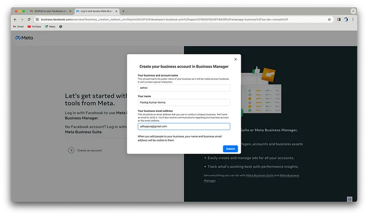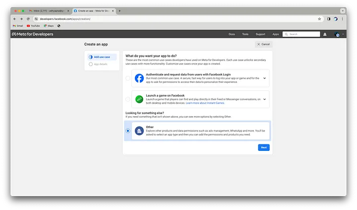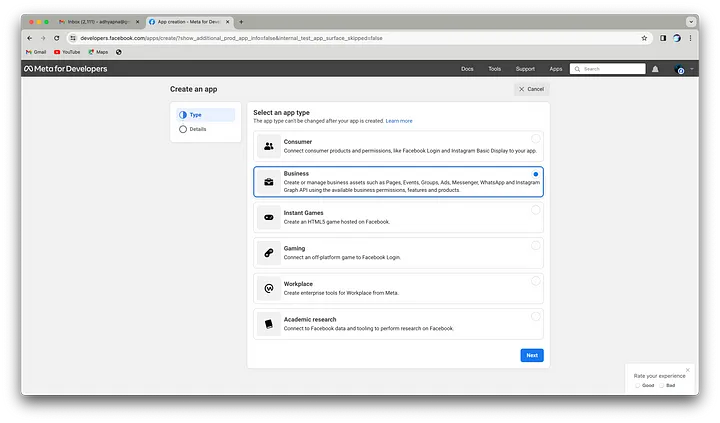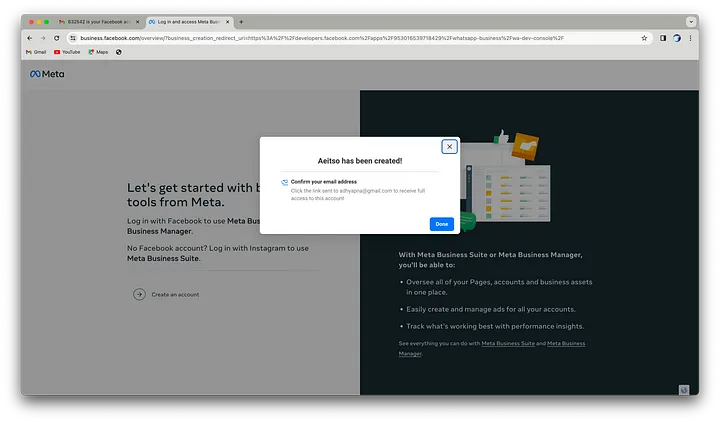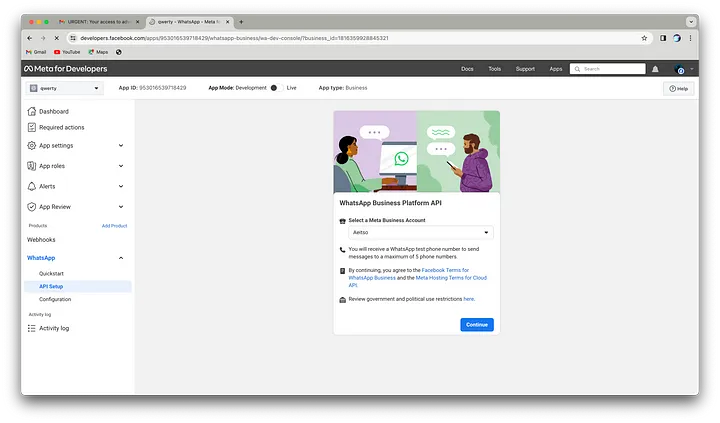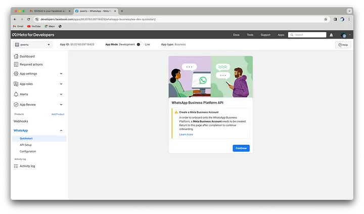 - After creating your Meta Business Account, you will be welcomed back to the Developer Portal.