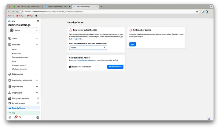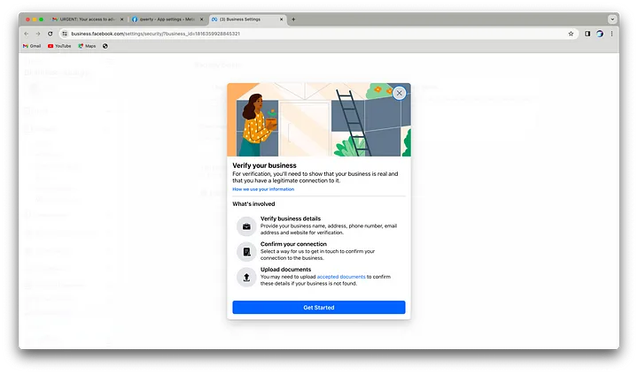 - Click “Continue” to be redirected to the Meta Business Portal.